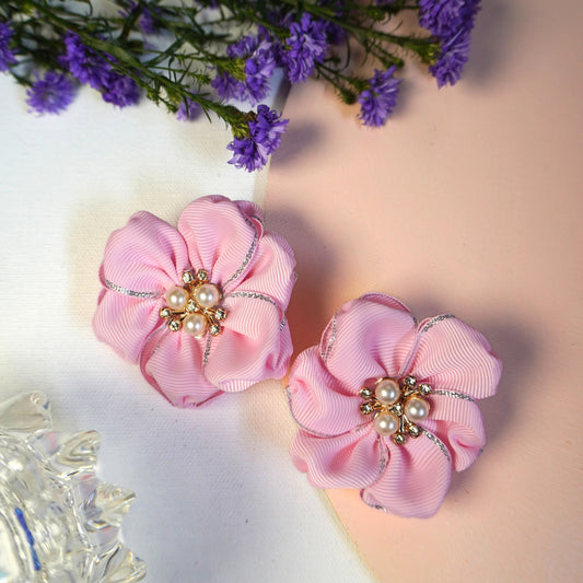 Rosy Pearl Blossom Hair Tie Set