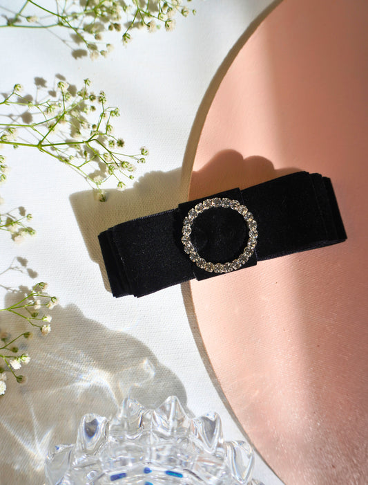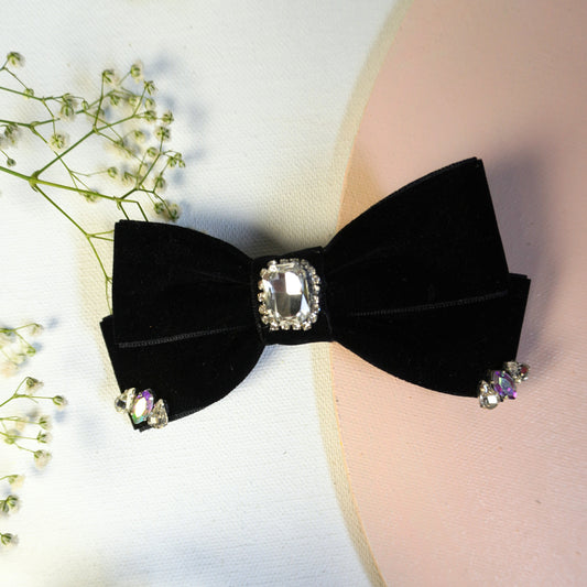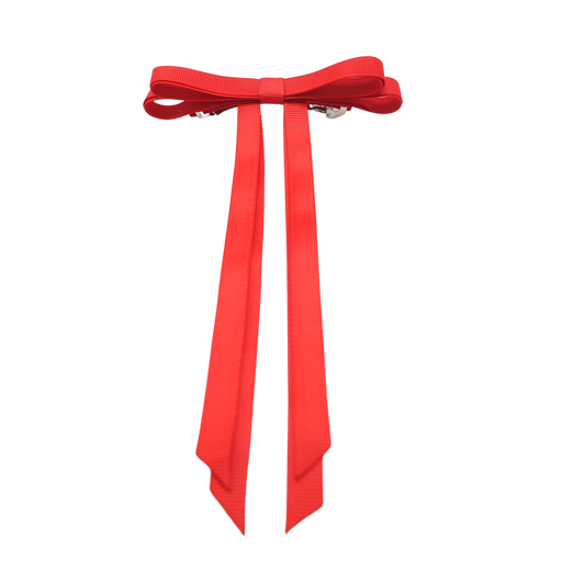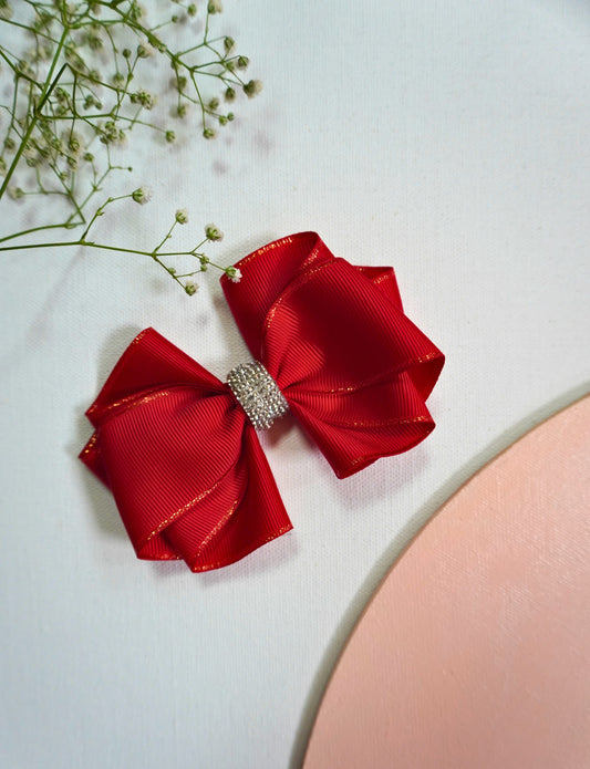 Scarlet Glam Bow – Rhinestone Fringe Hair Bow